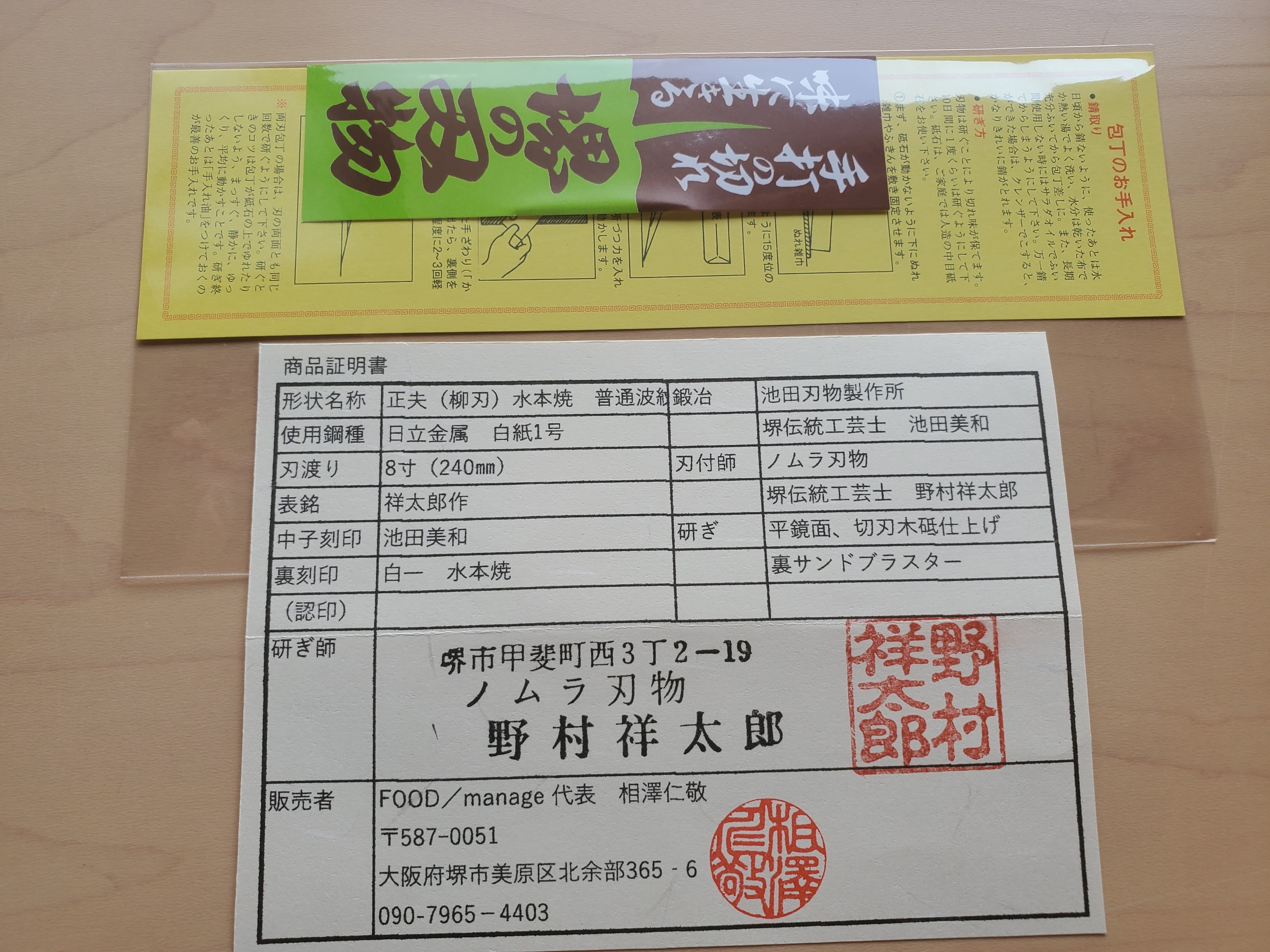 野村さんの印が入った商品証明書(写真をご確認ください)もお付けしていますので安心してお買い上げ頂けます。