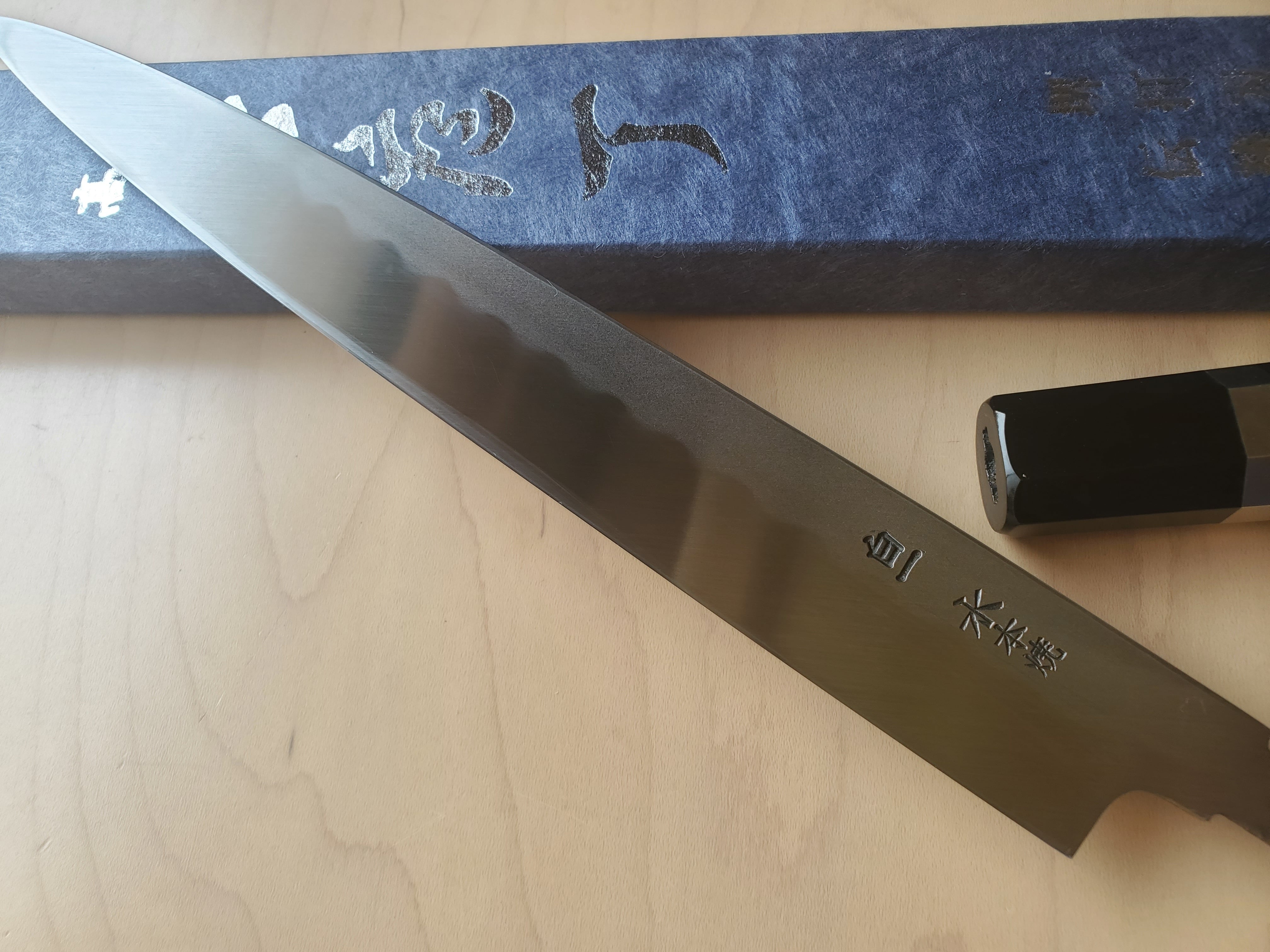 柳刃(正夫)白1 水本焼 8寸(刃渡り24㎝)の本焼包丁 新品未使用品です。