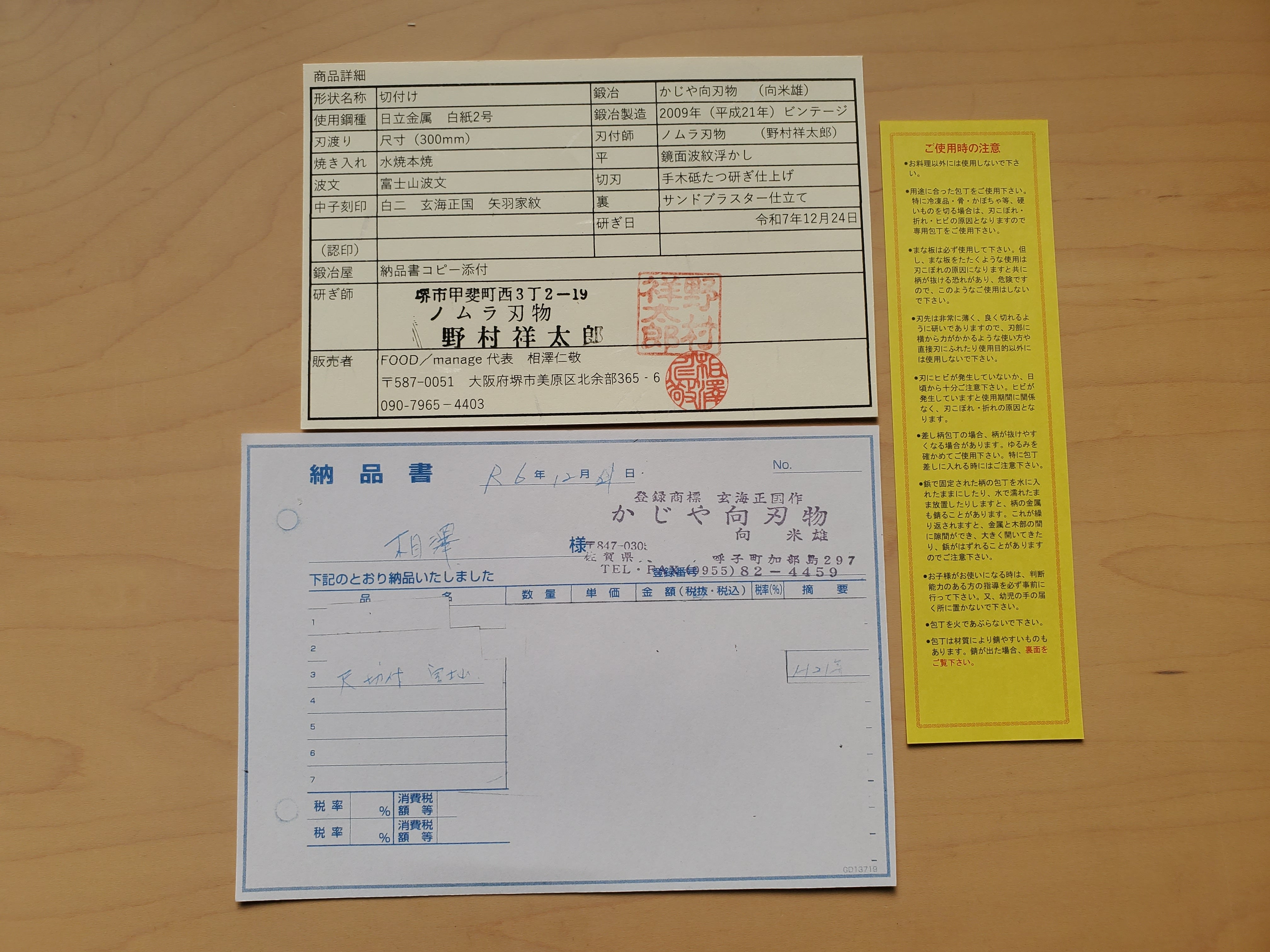 2025年12月 年末に富士波紋の商品が新しく研ぎが上がって来ました!