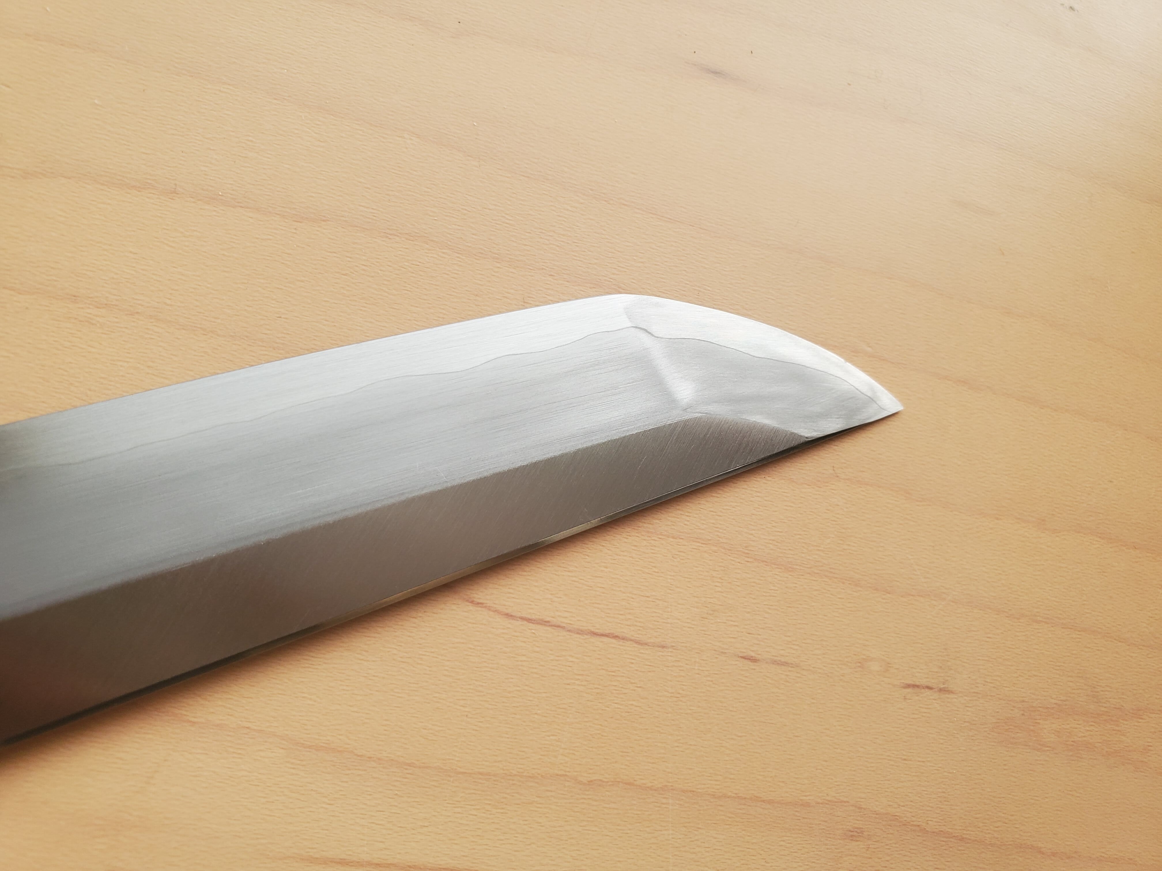 鍛冶は堺で腕利きだった白木健一氏が手掛けた作品で、研ぎは森浩刃物さんの初代が川北刃物さんに在籍されていた時期の作品とお聞きしています、
