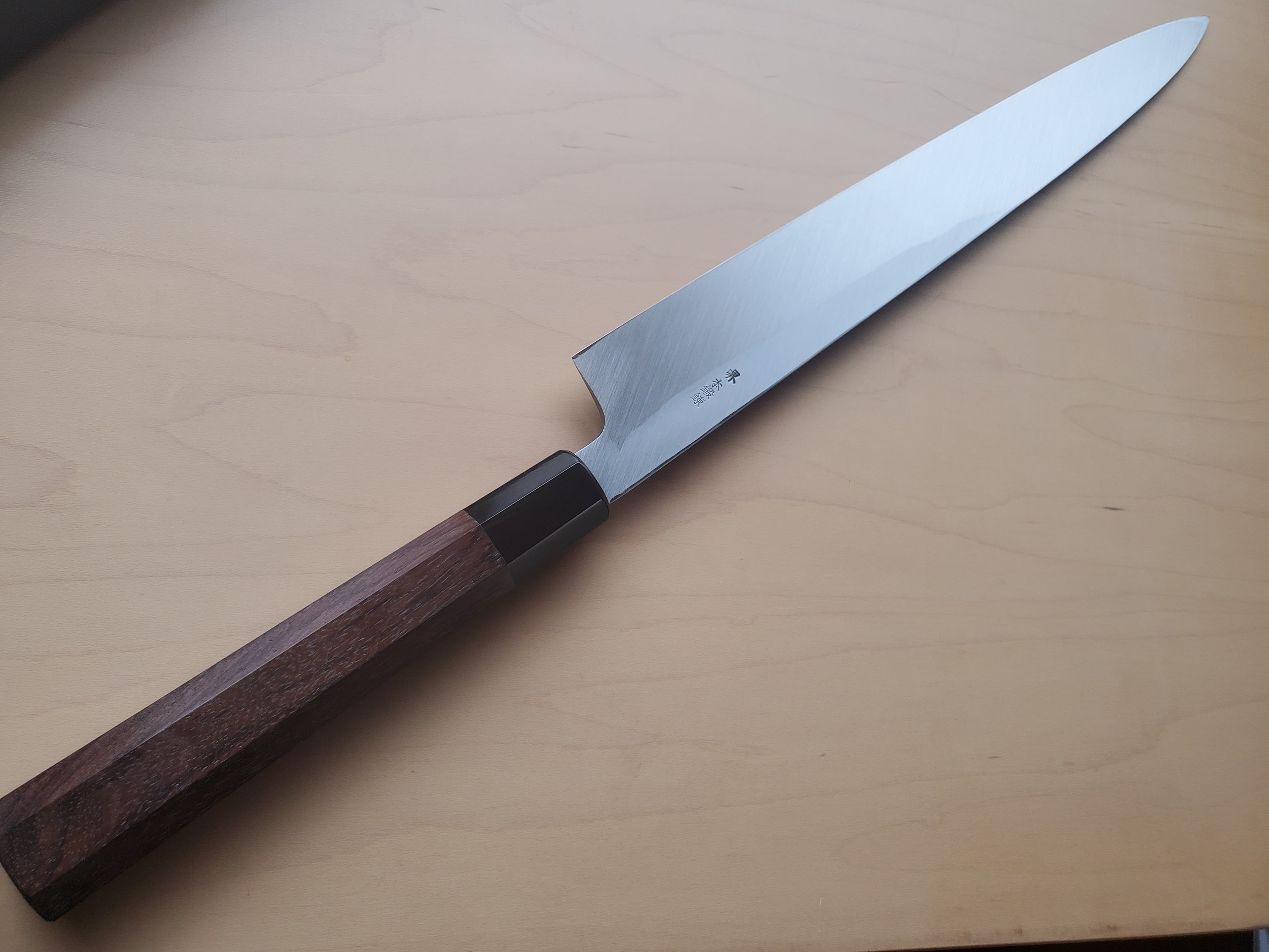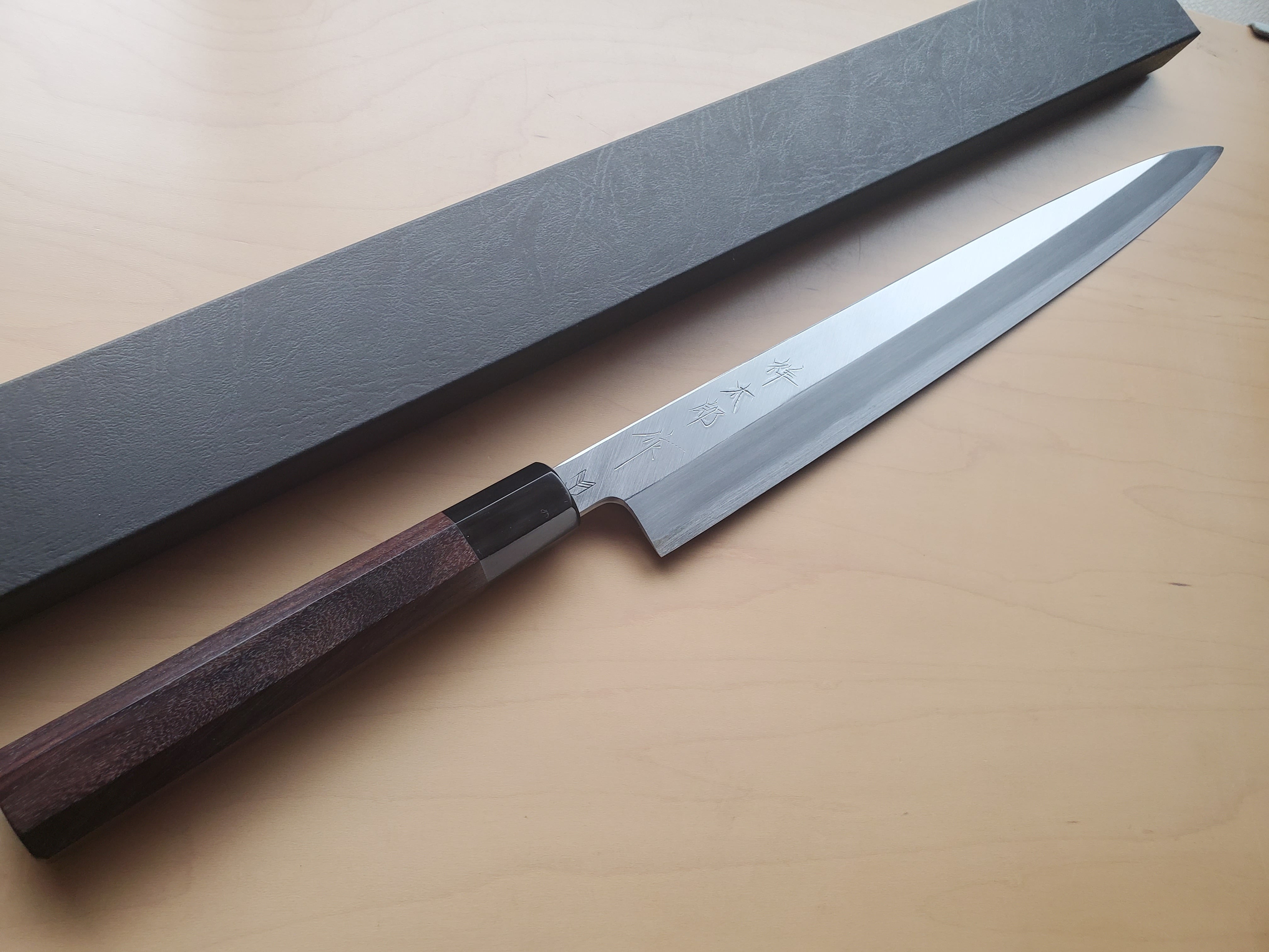 【堺打刃物(銘 祥太郎作)】正夫(柳刃)尺1寸(刃渡り330㎜)白鋼 水牛角紫檀八角柄