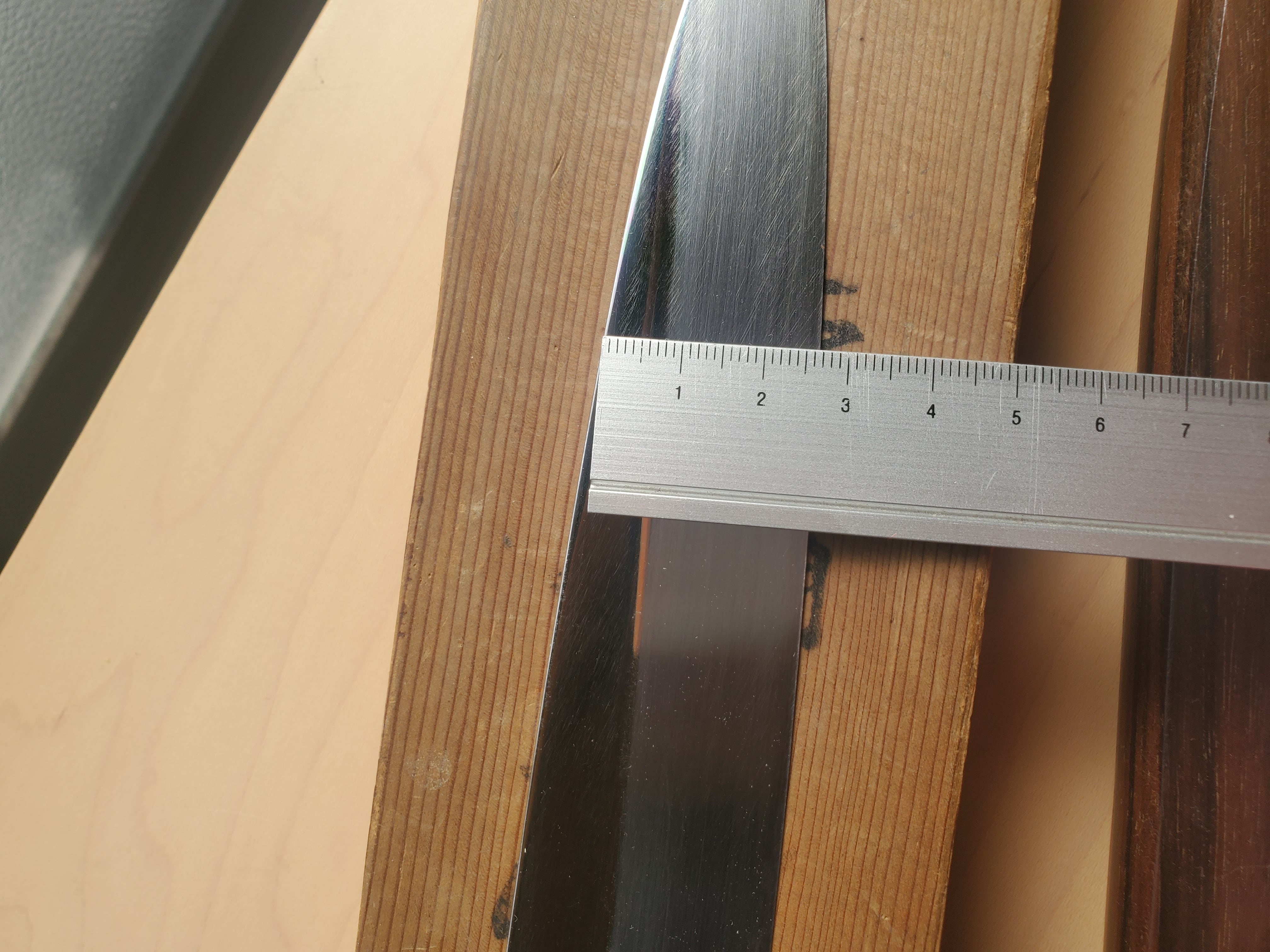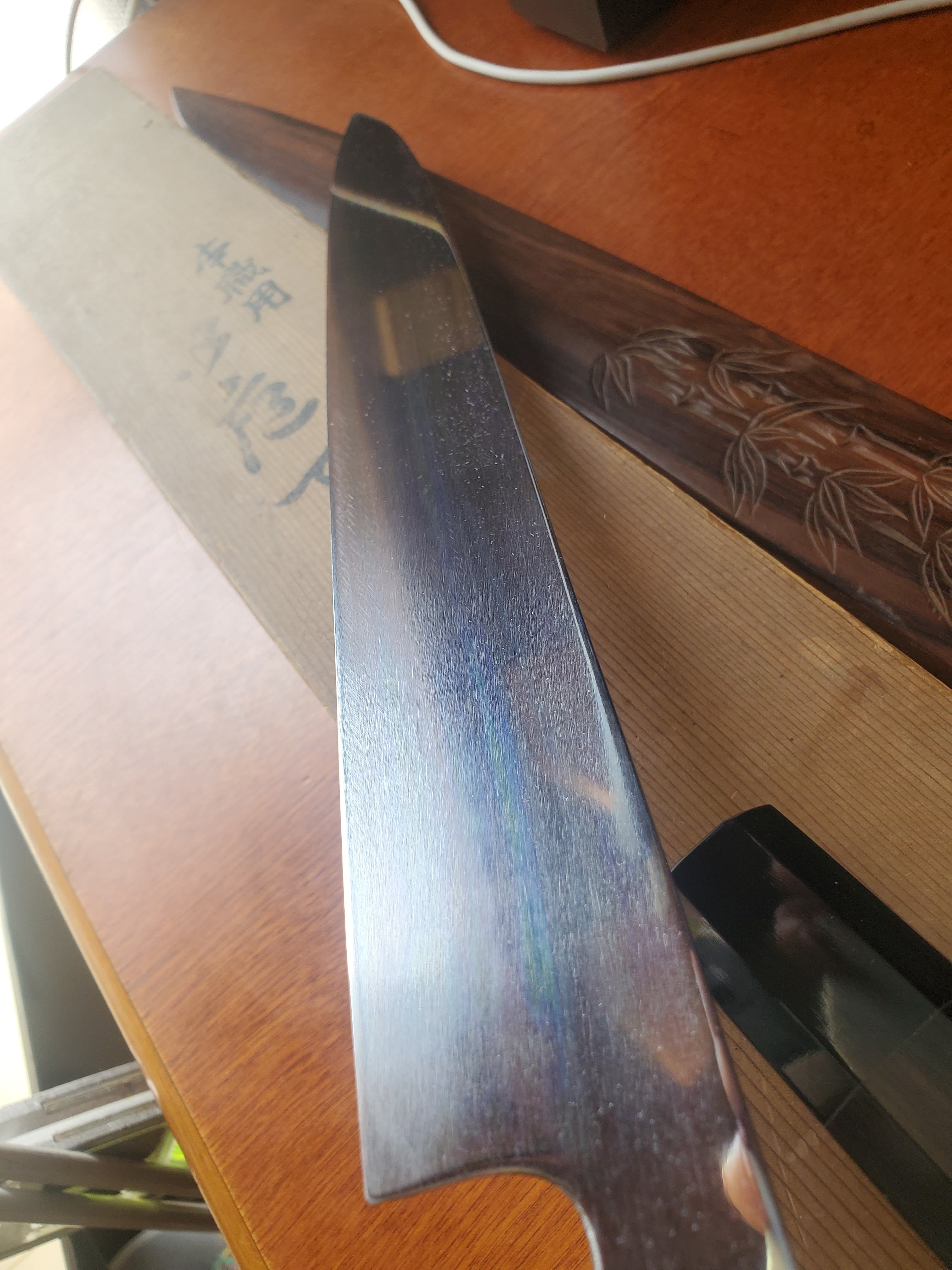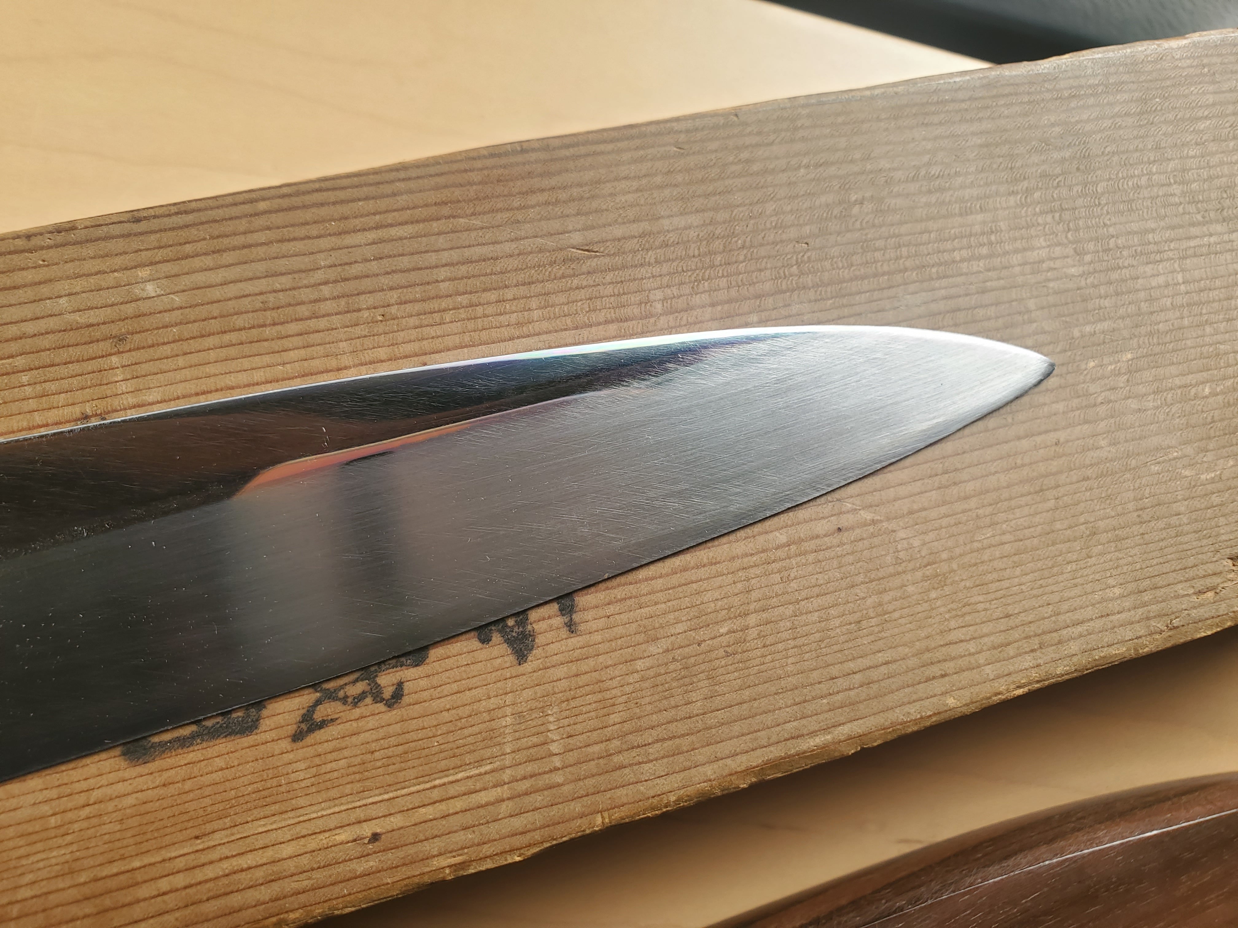 裏は軽い鏡面仕上げとなっており波紋は見え難いですが、切刃にくっきりと玄海さんらしい美しい波紋が見えます。